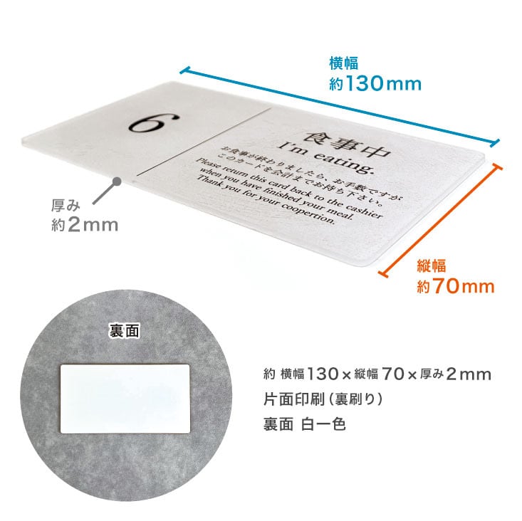 食事中サインにナンバーリング(通し番号) して会計札としてご利用いただける商品です。