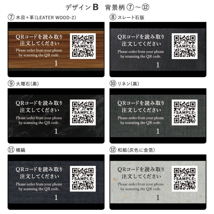 - オリジナルQRコードとテーブルナンバーを一体化!使用するお店にピッタリのカスタマイズが可能です。ご注文後にお送りするメールにて、テーブル番号やQRコードのご指示をお願い致します。